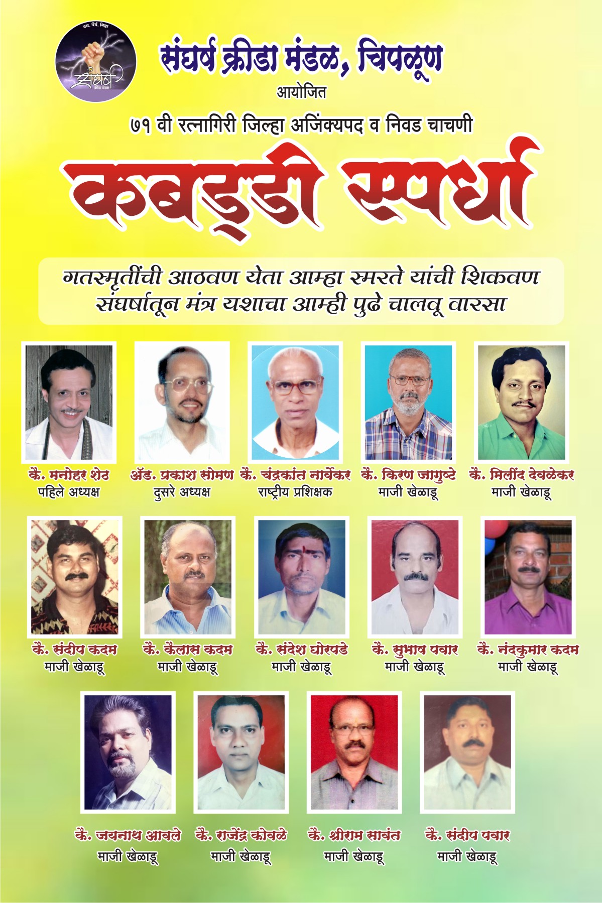 संघर्ष क्रीडा मंडळ ही कोकणातली एक आघाडीची कबड्डी क्षेत्रात काम करणारी संस्था आहे. १८ जुलै १९८२ रोजी स्थापन झालेली ही संस्था सातत्याने कबड्डी क्षेत्रात नवनवीन गोष्टी करीत आली आहे. सुरुवातीपासून आपल्या शिस्तीसाठी हा संघ प्रसिद्ध आहे. श्रम, धैर्य, निष्ठा हे ध्येय समोर ठेवून डीबीजे महाविद्यालयामध्ये १९८१ साली कबड्डी खेळणारे युवक भाऊ काटदरे यांच्या नेतृत्वाखाली एकत्र आले आणि त्यांनी ही संस्था स्थापन केली. सुरुवातीच्या काळात छोट्या छोट्या स्पर्धांमध्ये सहभागी होऊन नंतर जिल्ह्यामध्ये एक आघाडीचा संघ म्हणून नाव मिळवले. १९८२ साल पासून चिपळूण तालुका व रत्नागिरी जिल्ह्यात होणाऱ्या ७५% स्पर्धे मध्ये अंतिम विजेतेपद संघर्ष क्रीडा मंडळ असे.